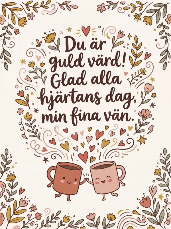 Vänskap är en gåva, så fin och så sann, vi stöttar och hjälper alltid varann. På denna dag fylld av kärlek och ljus, sprider vi glädje i hjärta och hus. Tack för att du finns, min vän så kär, jag är så tacksam att du är här.