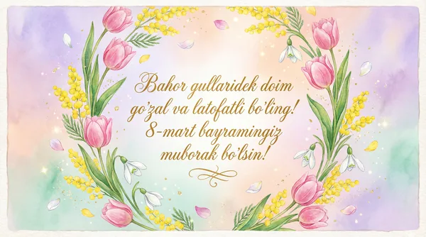 Aziz onajonim, 8-mart bayramingiz muborak bo'lsin! Doimo sog' va omon bo'ling.