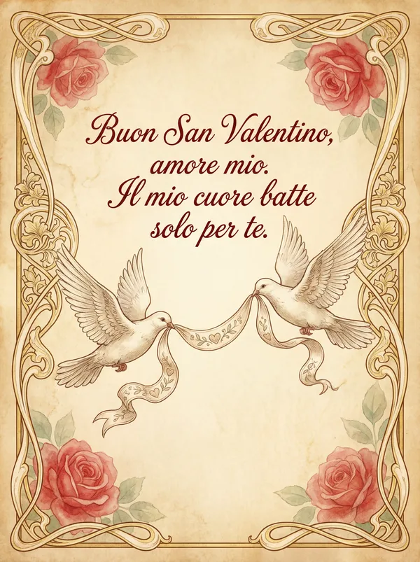 Nel battito del cuore sento il tuo nome, un dolce legame che il tempo non doma. Sei la mia luce, il mio sogno infinito, buon San Valentino, amore mio preferito.