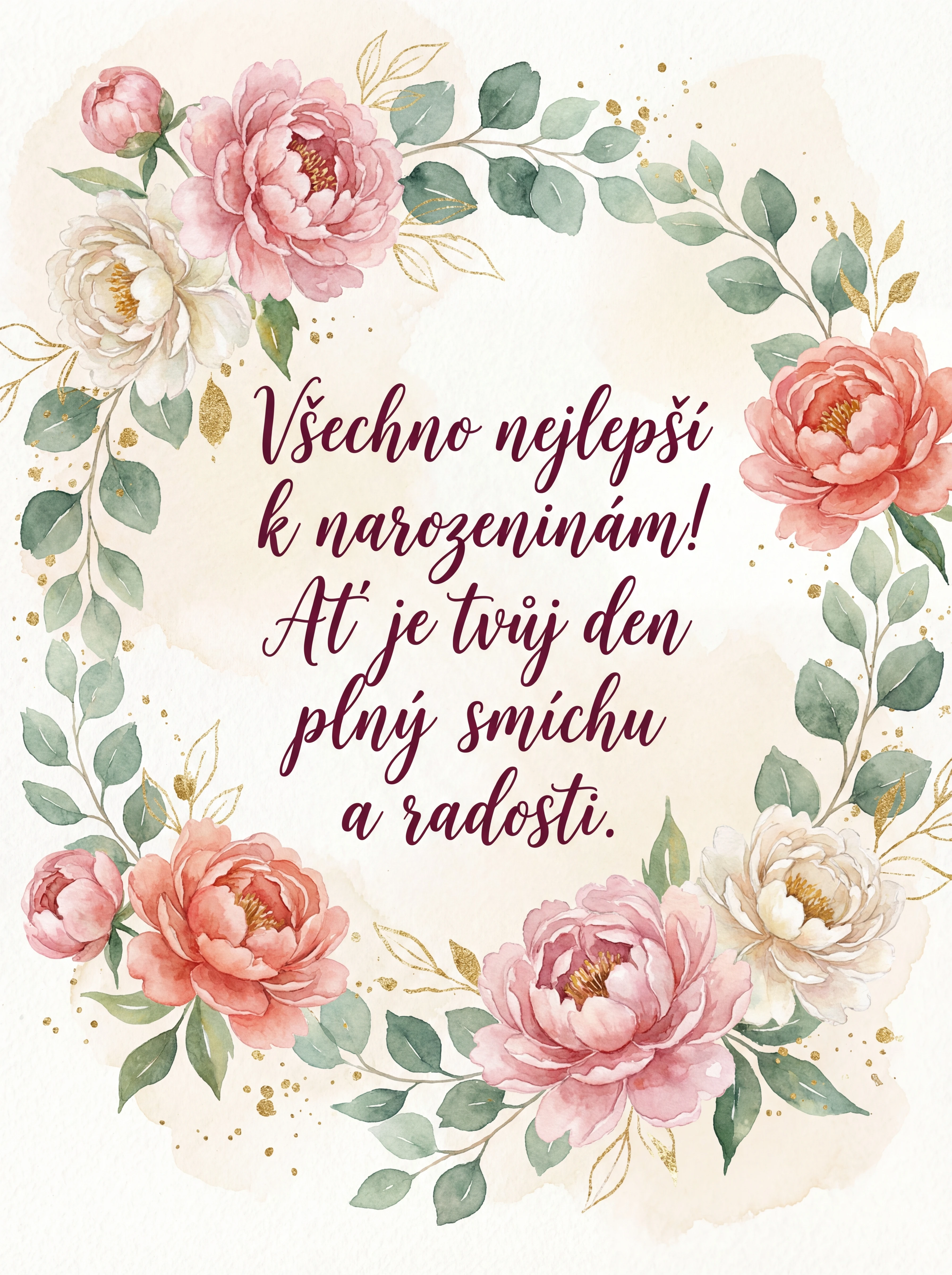 Všechno nejlepší k narozeninám! Ať je tvůj den plný smíchu a radosti.