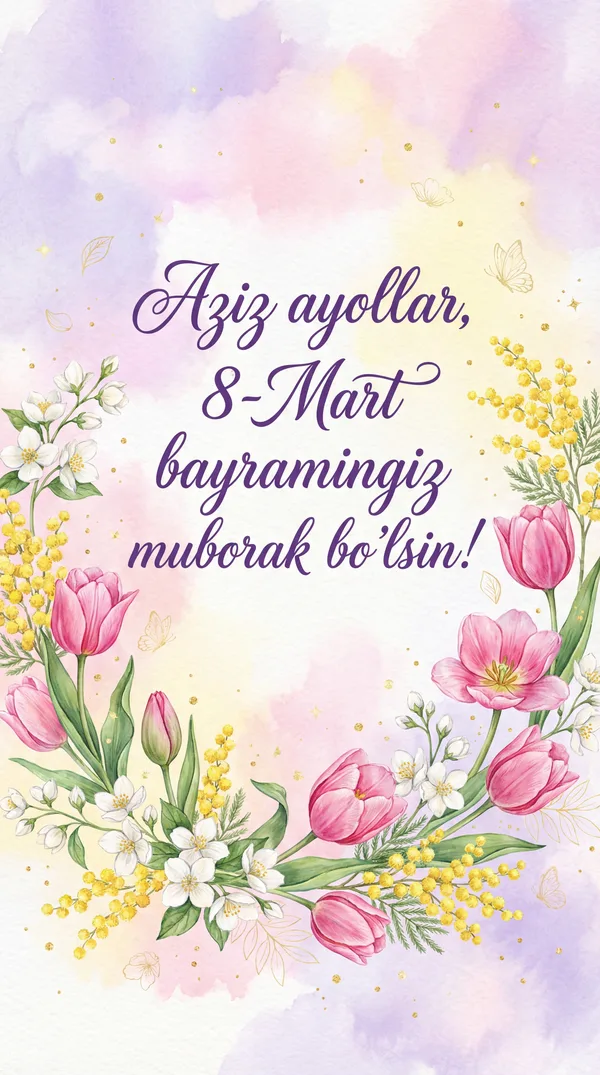 8-mart bayramingiz muborak bo'lsin! Doimo bahordek go'zal va nafis bo'ling.