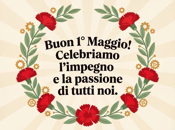 Buona Festa del Lavoro! Ti auguro un giorno di meritato riposo e tanta gioia.