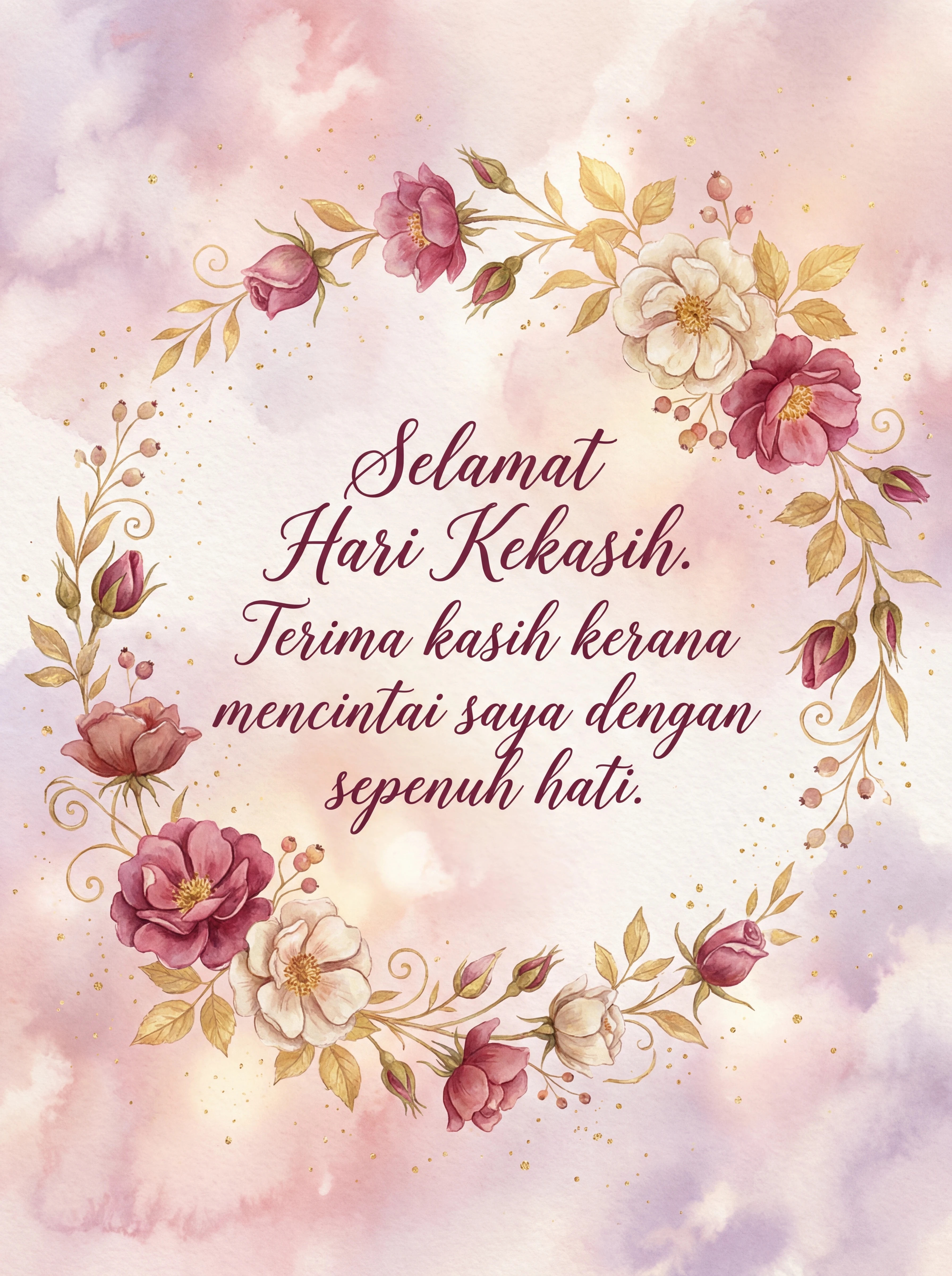 Selamat Hari Kekasih. Terima kasih kerana mencintai saya dengan sepenuh hati.