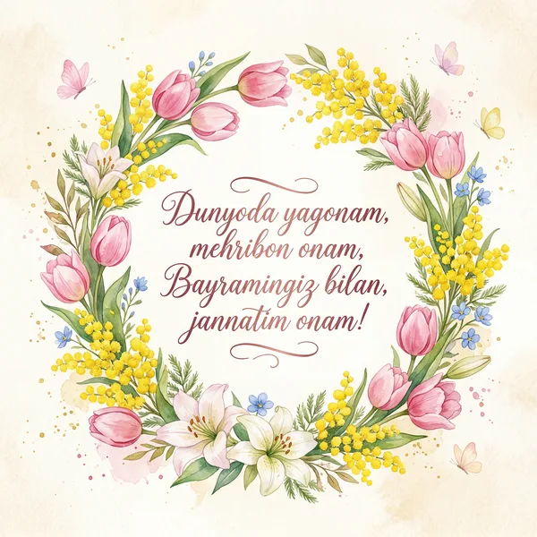 Bayramingiz muborak, munis Onajonim! Doim baxtimizga sog'-salomat bo'ling!