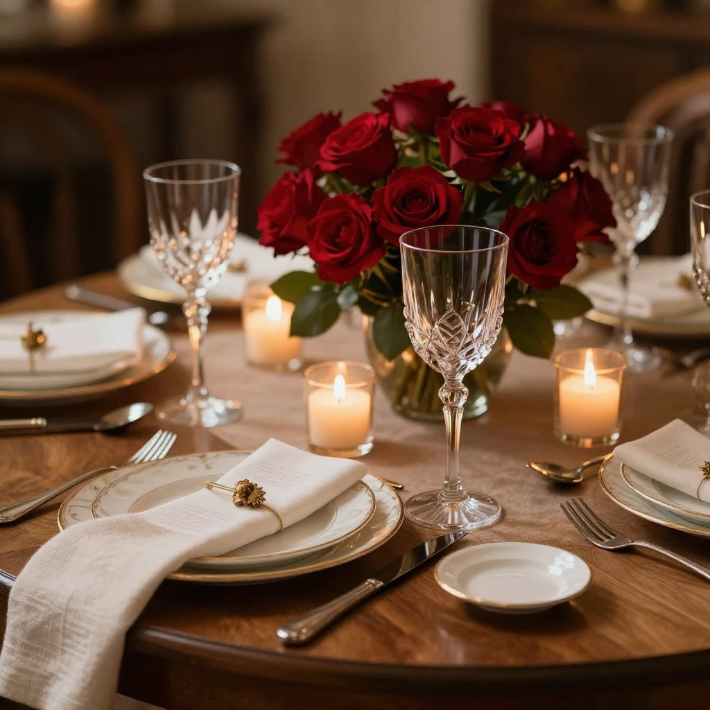 #จัดดอกกุหลาบแดงบนโต๊ะ