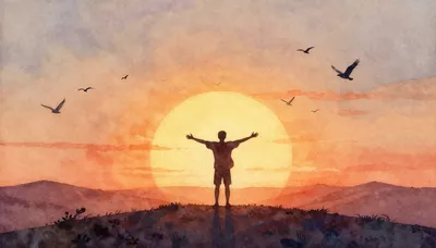 – ภาพพระอาทิตย์ขึ้นที่น่าหลงใหลเหนือทิวทัศน์ต่างๆ สื่อถึงความหวังและการเริ่มต้นใหม่