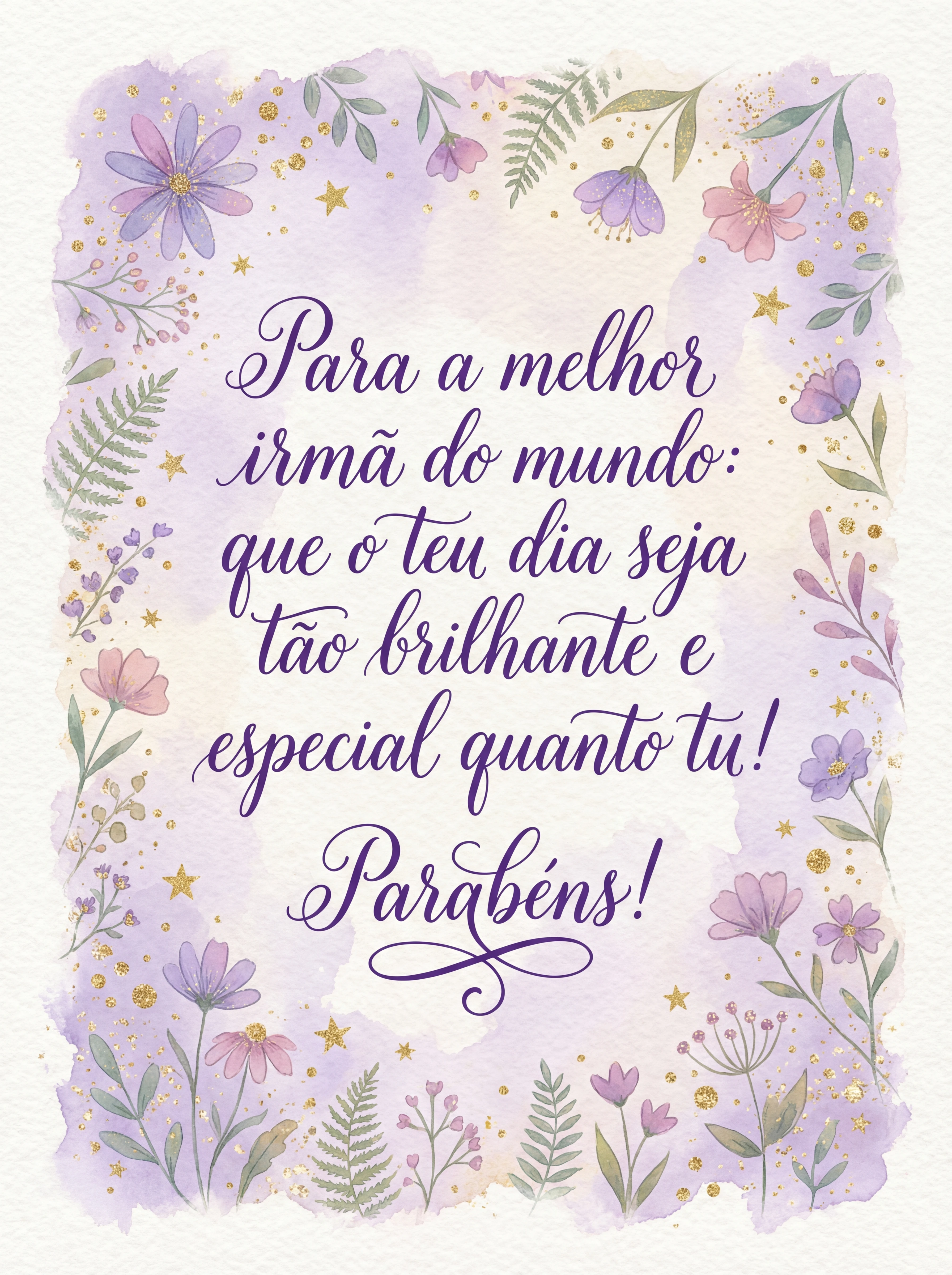 Para a melhor irmã do mundo: que o teu dia seja tão brilhante e especial quanto tu! Parabéns!