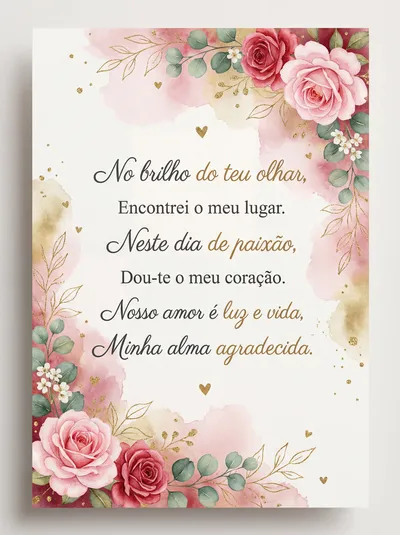 No seu olhar encontrei meu cais, Um porto seguro, amor e paz. Cada momento ao seu lado é luz, Um sentimento que sempre me conduz. Feliz Dia dos Namorados!