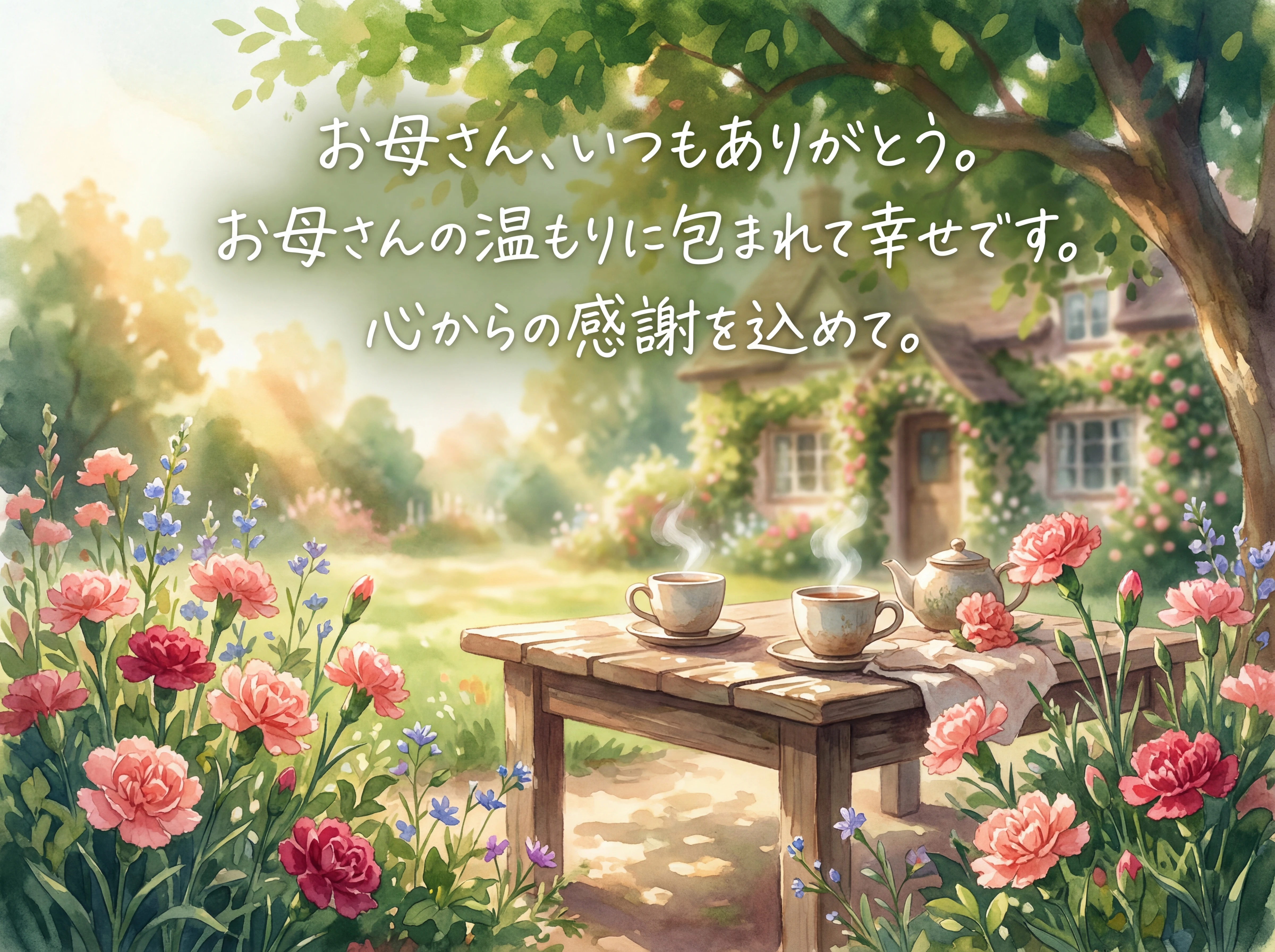 お母さん、いつもありがとう。 あなたの温かさに包まれて、私は幸せです。 心からの感謝を込めて。