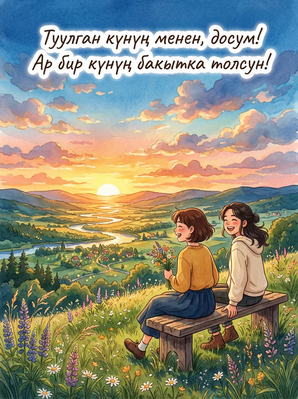Туулган күнүң менен, досум! Ар бир күнүң кубанычка толсун, максаттарың орундалсын!