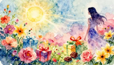 – Düşünceli bir hediye, gül yaprakları ve kutlama havasını yansıtan özel gün sanat eserleri.