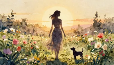 – Melankolik bir sahneye sıcaklık katan oyuncu bir köpeğin sanatsal tasviri.