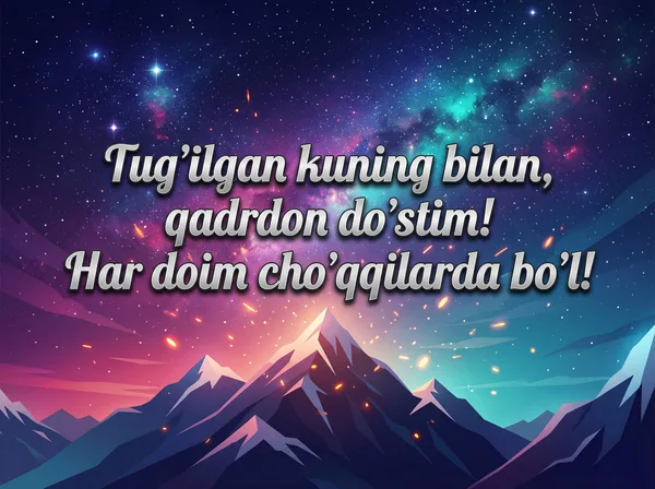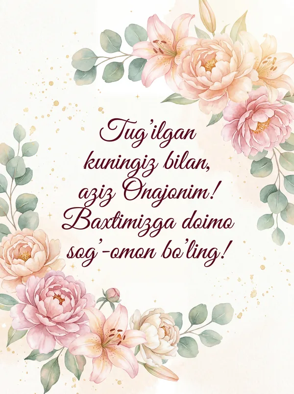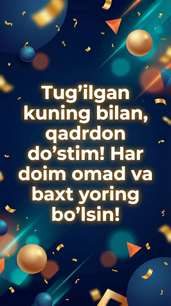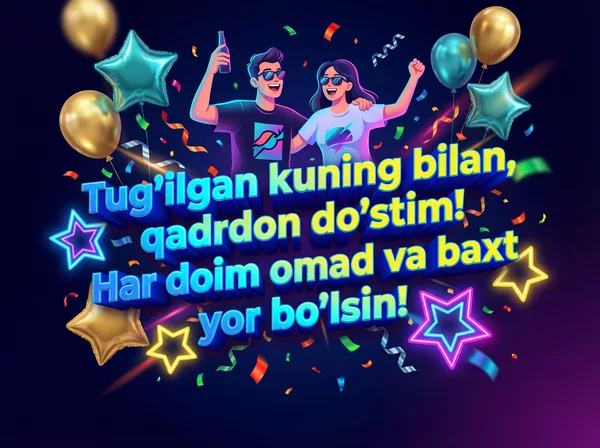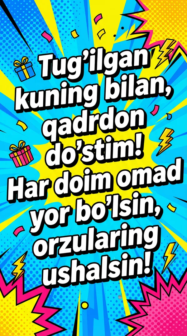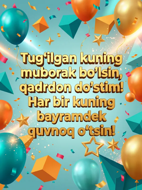 Har qanday vaziyat uchun sun'iy intellekt tomonidan ishlab chiqilgan chiroyli tabriknomalar. Yuklab oling, chop eting yoki raqamli ko'rinishda ulashing — barchasi bepul! Bir tiyin sarflamasdan kimningdir kunini maxsus qiling. 💌