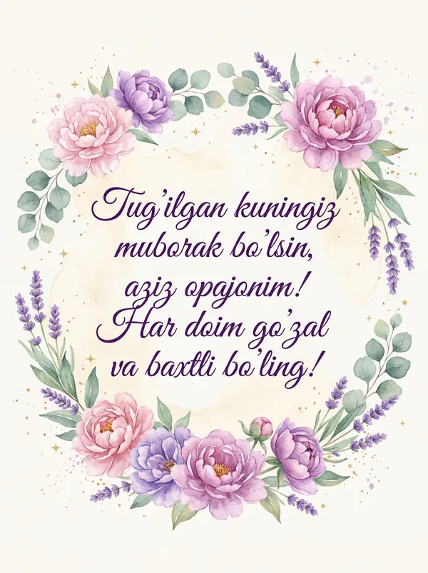 Hayotingizdagi ajoyib ayollarga ular uchun maxsus ishlab chiqilgan o'ylangan tabriknomalar to'plamimiz bilan qanchalik g'amxo'rlik qilishingizni ko'rsating. Nafis va romantikdan tortib, qiziqarli va ilhomlantiruvchi xabarlargacha, har qanday vaziyatda uni tabassum qilishga majbur qiladigan mukammal so'zlarni topasiz. ✨ Bizning kolleksiyamiz har bir ayolning o'ziga xosligini ta'kidlash va ularga bo'lgan samimiy tilaklaringizni yetkazish uchun yaratilgan.