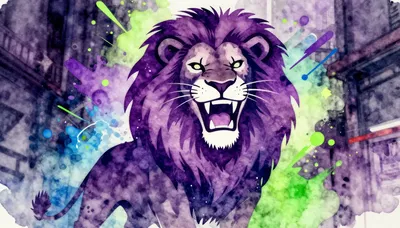 – Kuchli energiya bilan bo'kirayotgan, olovdan yaratilgan ulug'vor sher tasvirlari.