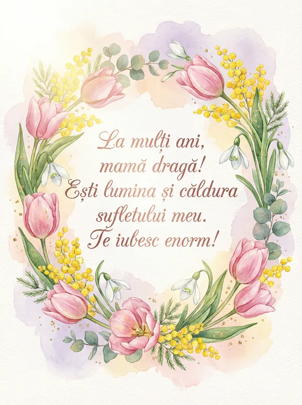 Mămică dragă, soare blând, Îți dăruiesc un mărțișor, Să porți în suflet și în gând, Al primăverii alb decor. Să fii mereu ca o floare, Cu zâmbet cald și plin de dor.